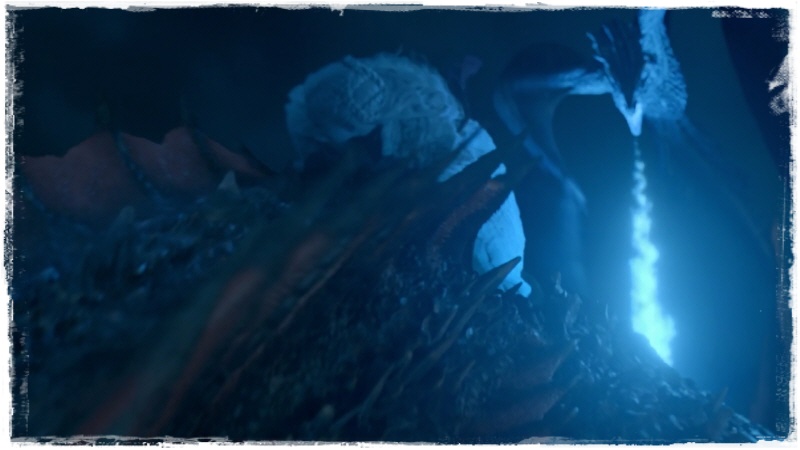 존이 드래곤을 타고 숲 근처로 가보니 말에 탄 간부급 화이트 워커는
