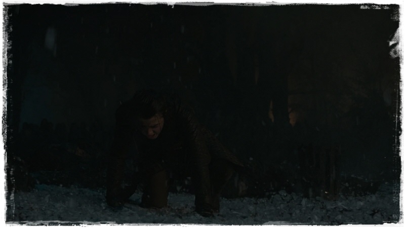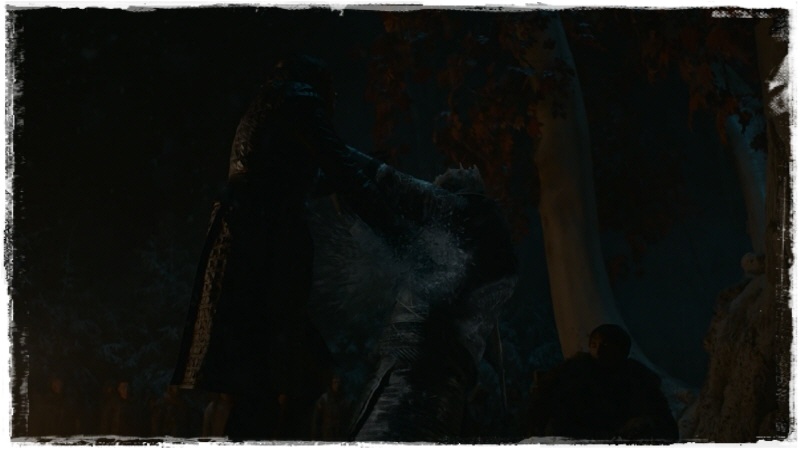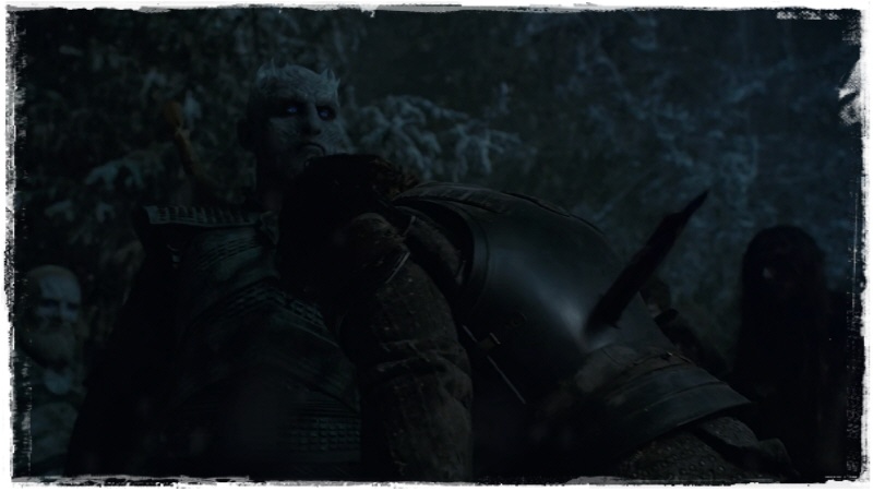브랜의 코 앞까지 다가와서 어깨에 찬 칼을 쥐려는 나이트 킹.