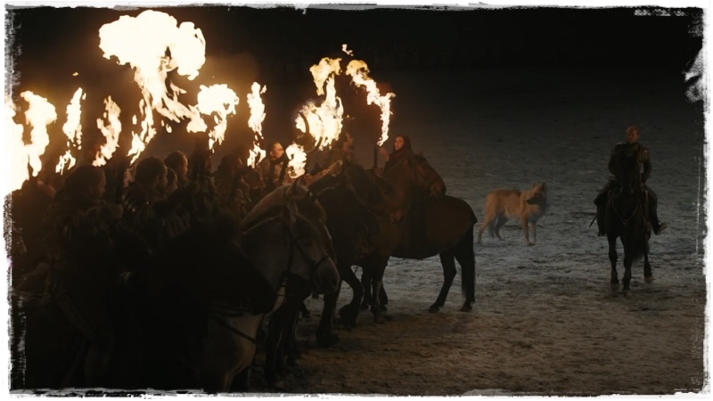 거세병 앞에 도트락 기병대, 그 옆으로 와이들링 부대가 배치된 것으로 보입니다.