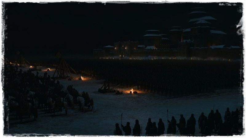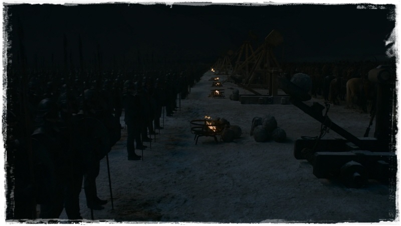 윈터펠 성벽 바로 앞에 각종 무기를 준비해 놓고 병력 배치도 마무리.
