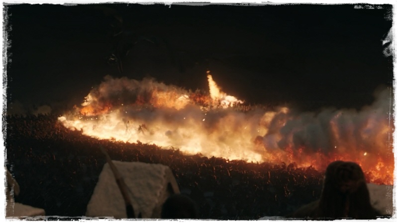 불 덕분에 백귀 떼거지들이 잠시 진격을 멈춥니다.