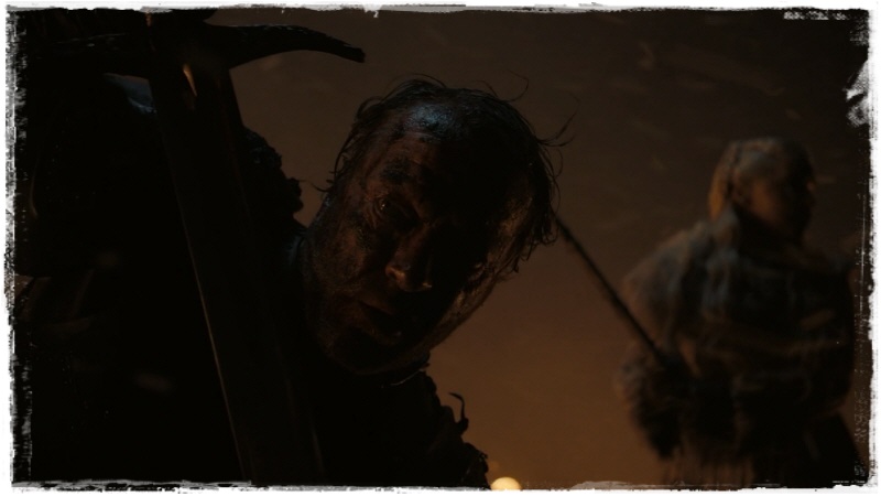 브랜의 코 앞까지 다가와서 어깨에 찬 칼을 쥐려는 나이트 킹.