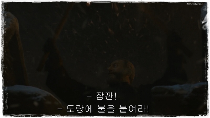 윈터펠 성벽 바로 앞에 각종 무기를 준비해 놓고 병력 배치도 마무리.