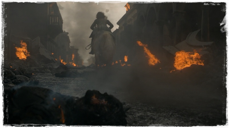 도망치는 병력들을 계속 쫓아다니며 불로 지져버리는 대너리스.