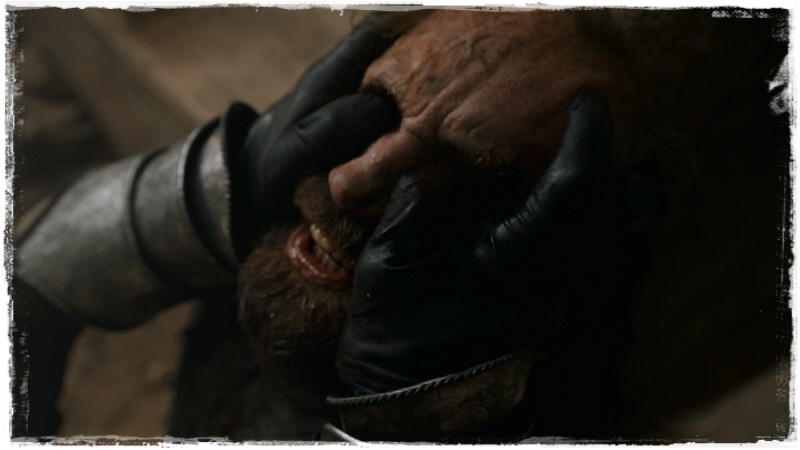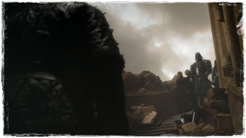 하운드의 칼에 투구가 벗겨지는 마운틴. 완전 괴물이 되었습니다.