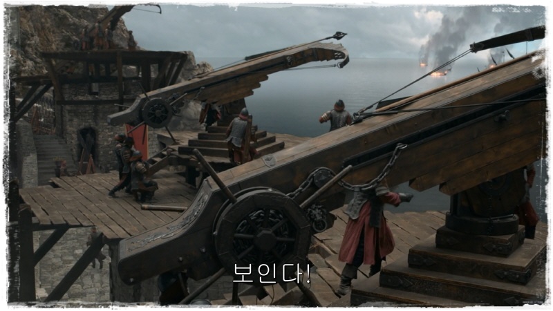 유론이 대응해보려 하지만 스콜피온 화살을 적절히 피해가며 배들을 하나씩 불태웁니다.