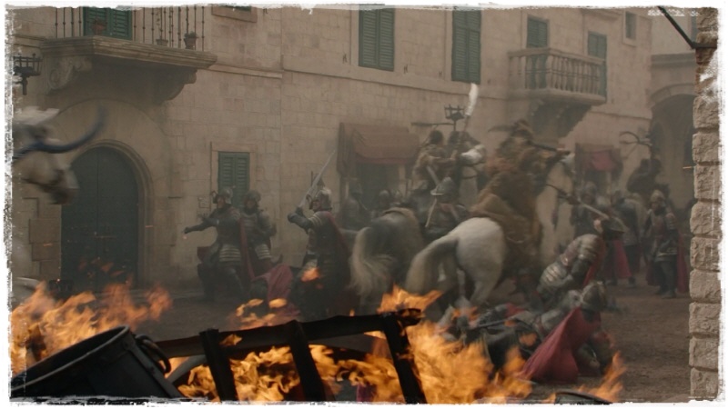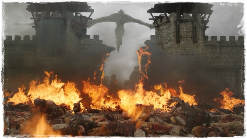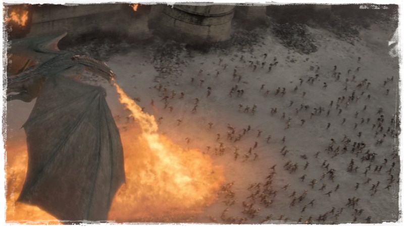 도망치는 병력들을 계속 쫓아다니며 불로 지져버리는 대너리스.