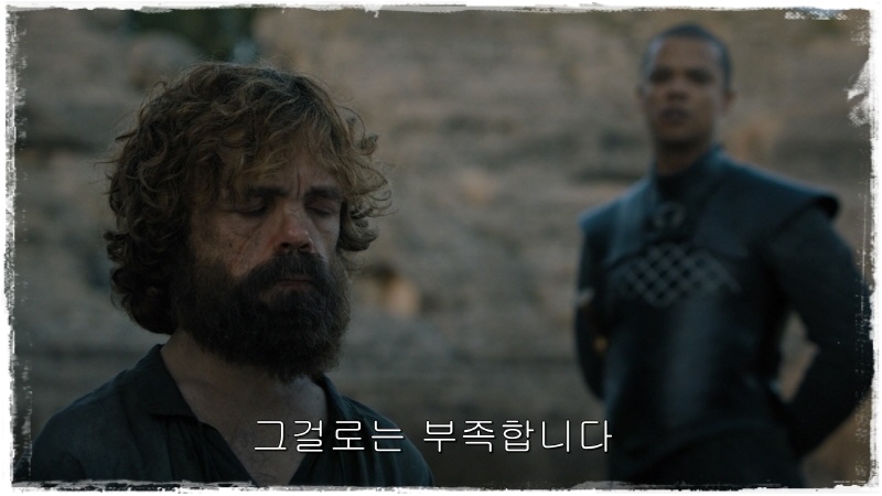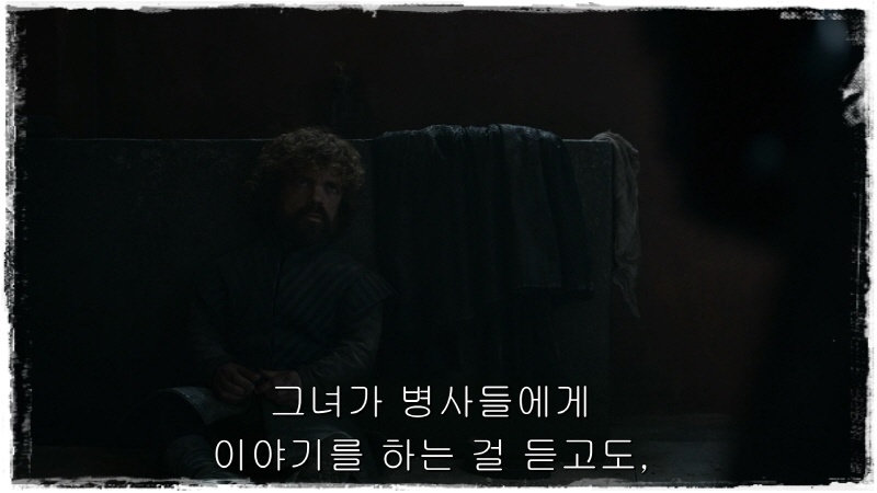 라는 표정의 대너리스는 병사들에게 티리온을 끌고가라 합니다.