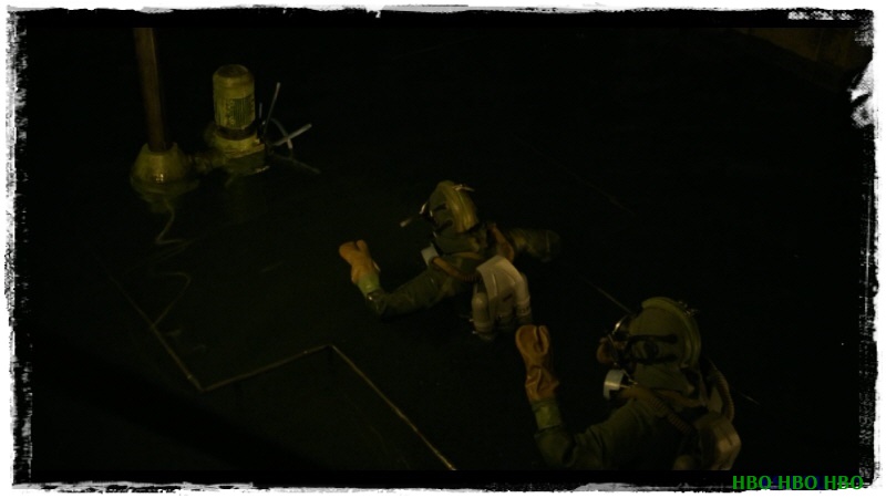 엄청난 방사능 피폭을 감수하며 일을 해내고 마는 3인의 작업자.