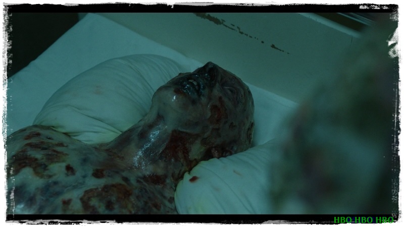 완전히 모든 조직이 괴사하고 있는 것 같은 참혹한 모습. 차라리 안락사를 시켜주는 것이 인간적일 것 같습니다. 집에 가라는 간호사들에게 남편을 혼자 죽게 둘 수 없다고 버티는 이그나텐코의 아내. 간호사들이 자리를 비운 사이에 남편에게 비밀을 털어놓습니다.