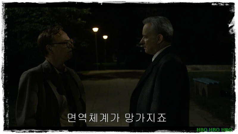 "글쎄요.... 우리는... 꾸준히 노출됐지만 아주 많지는 않습니다. 세포가 손상될 정도는 아니지만 DNA는 손상될 정도로 지속적인 노출이죠. 추후에 암이나 재생불량성 빈혈 같은 거에 걸릴 수 있어요."