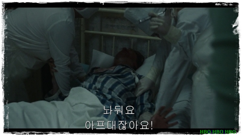 놀래서 후다닥 달려가 보니 고통 때문에 환자가 발버둥을 치고, 의료진들이 이를 제지하고 있습니다.