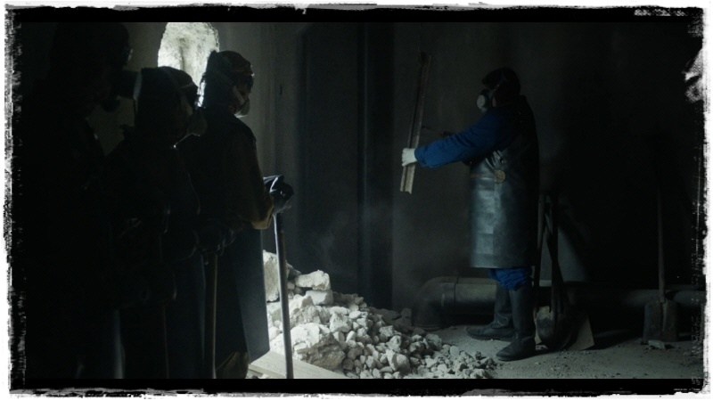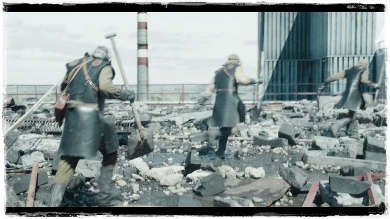 지붕에는 콘크리트와 흑연들이 뒤섞여 있었습니다. 카메라의 움직임 덕분에 작업자들의 어지러움이 제게도 느껴집니다. 이그나텐코가 맛 본 금속 맛도 느꼈겠죠?