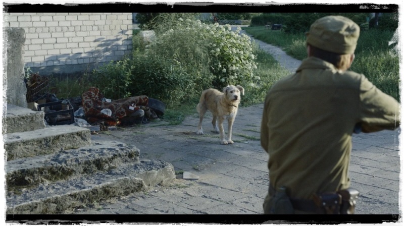 그러다가 1:1로 마주친 개 한 마리. 당황한 파블은 도망가라고 속삭이면서 총을 쏘지 않습니다만, 개가 파블을 향해 짖기 시작합니다. 얼떨결에 방아쇠를 당기는 파블.