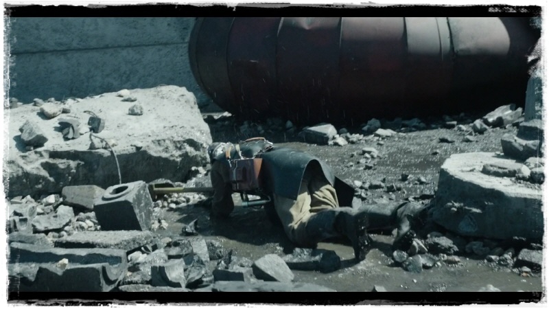 지붕에는 콘크리트와 흑연들이 뒤섞여 있었습니다. 카메라의 움직임 덕분에 작업자들의 어지러움이 제게도 느껴집니다. 이그나텐코가 맛 본 금속 맛도 느꼈겠죠?