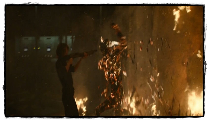 아니나 다를까 불꽃속에서 튀어나와 사라코너를 던져버리는 Rev-9.