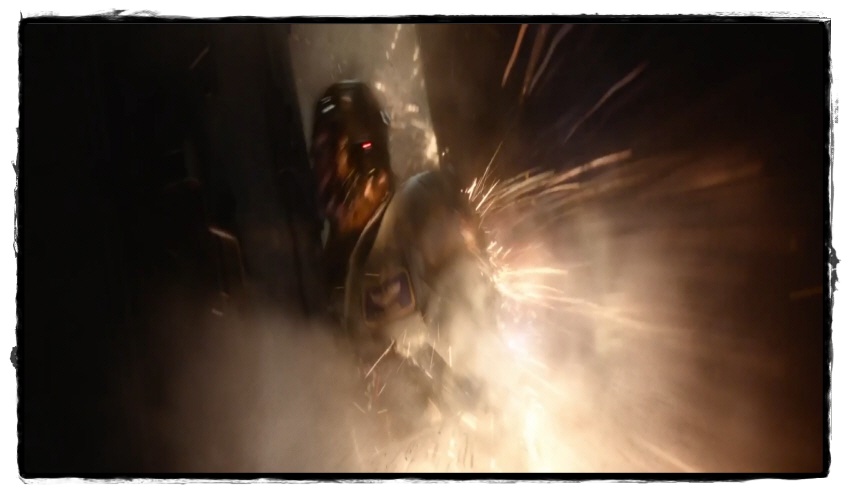 그래도 버둥대며 배터리를 빼 버리려는 Rev-9의 눈주위를
