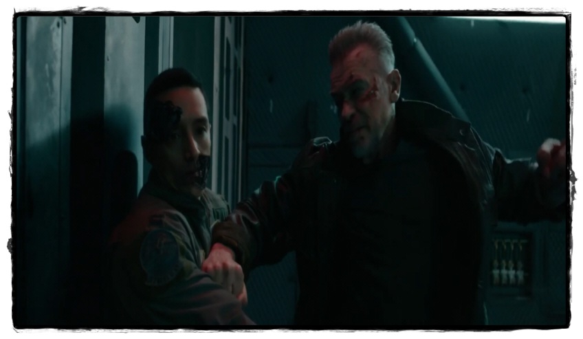 눈에 고전압 배터리가 박히고 버벅대는 Rev-9을 끌고 어디론가 기어가는 T-800.