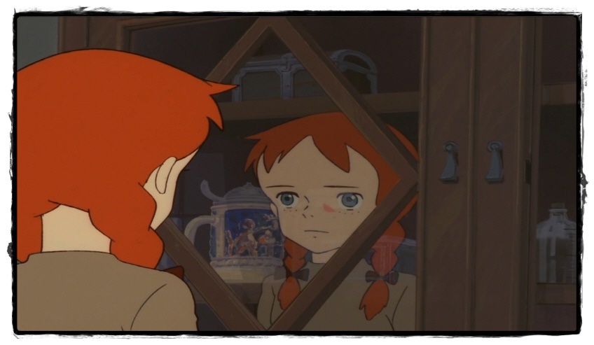 빨간 머리와 주근깨 많은 자신의 모습과 대비되는 모습을 상상을 하는 앤.