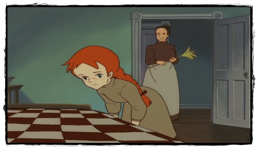 천방지축 앤을 초장에 잡으려고 애쓰는 마릴라 아줌마.