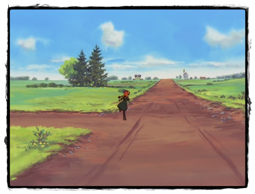 마차가 간 길로 후다닥 혼자 뛰어가는 앤.