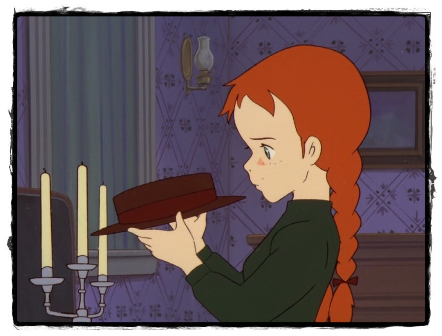 예쁜 모자일까 기대가 되어 표정이 밝아지는 앤.