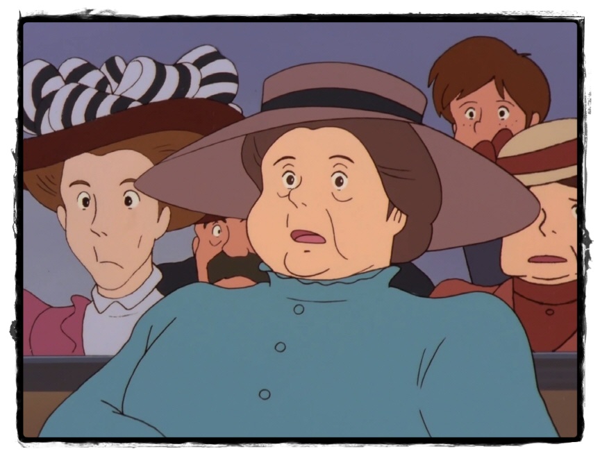 앤의 모자에 화려한 꽃장식을 보고 놀란 린드 부인.