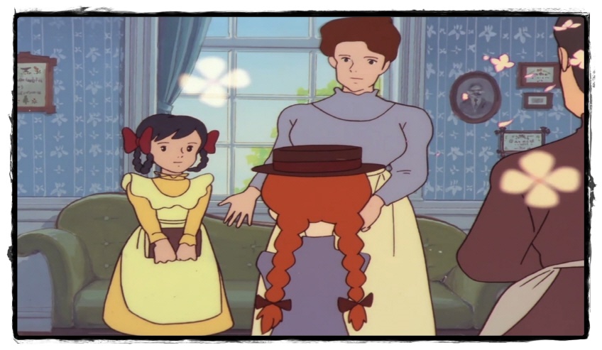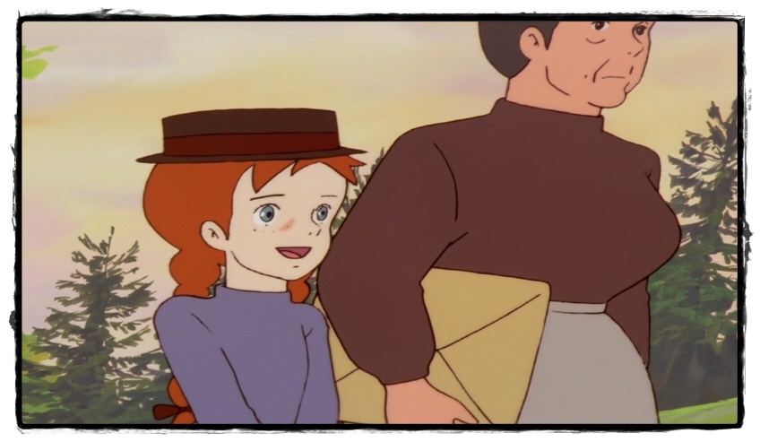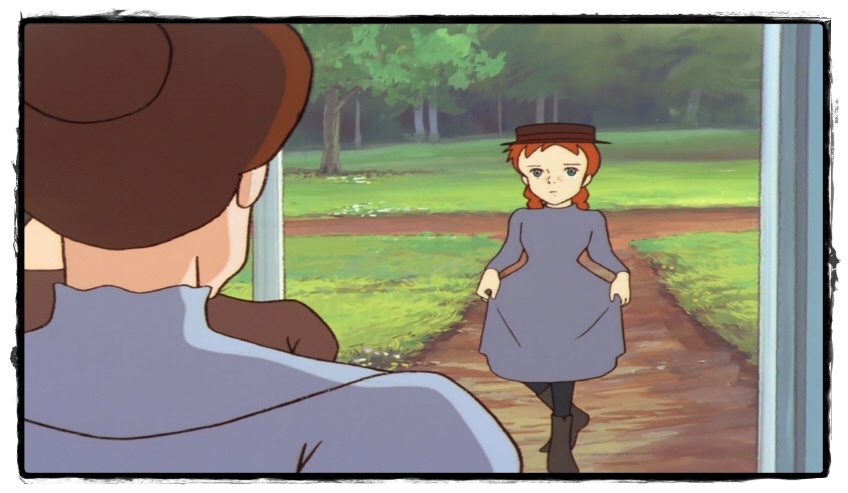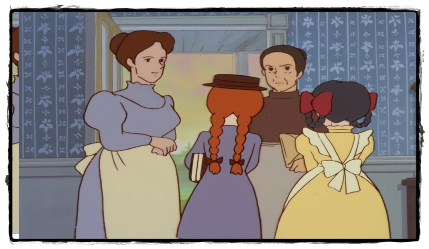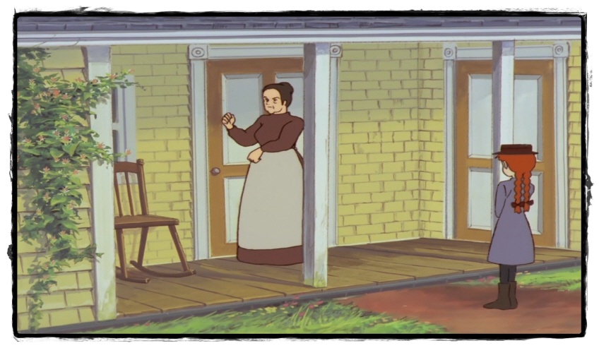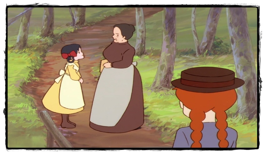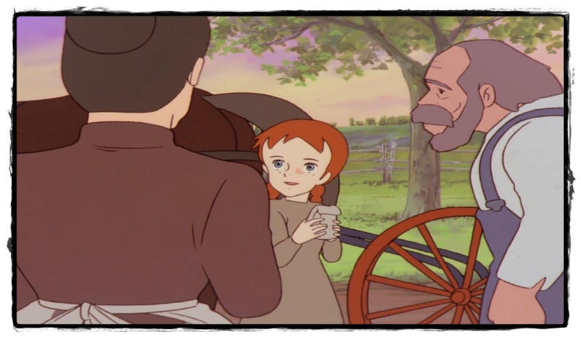 마릴라 아주머니와 함께 베어리 씨 댁에 도착한 앤.