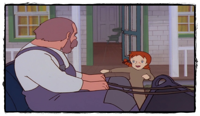후다닥 밖으로 뛰어나와 매튜 아저씨를 반기는 앤.