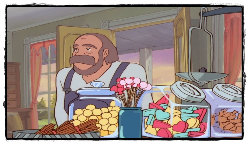 수줍음 많은 아저씨는 앤에게 과자를 사주고 싶은가 봅니다.