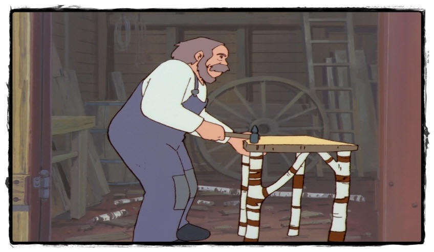 다이애나와의 소꿉 놀이터에 탁자가 없다고 말한 앤을 위해 아저씨는 이렇게 탁자를 만들고 있었습니다. 계속 2층 방에서 근신하고 있는 앤이 걱정되는 매튜.