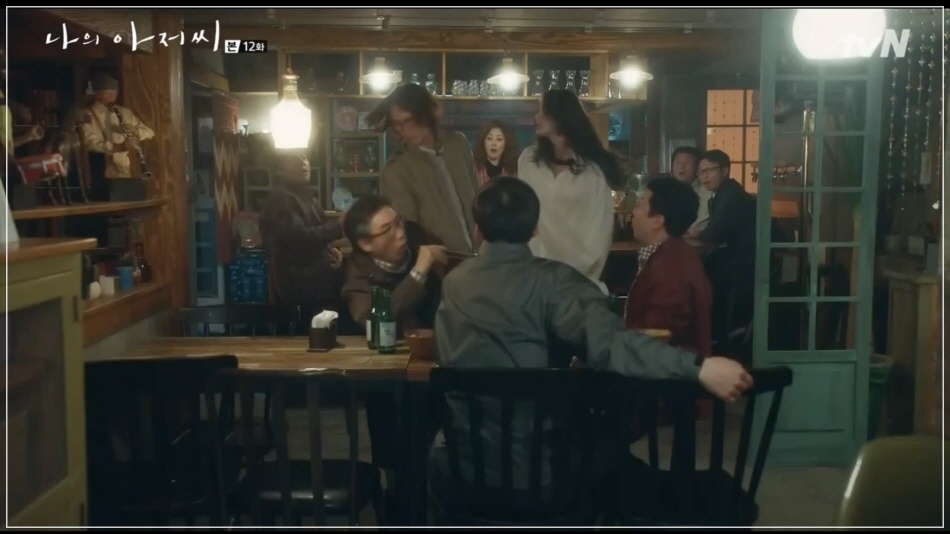 술집에 들어오자마자 기훈의 뺨따구를 한 대 시원하게 날립니다.