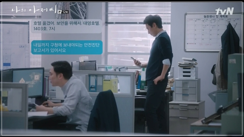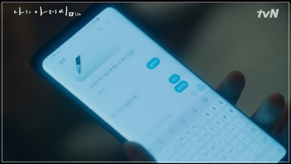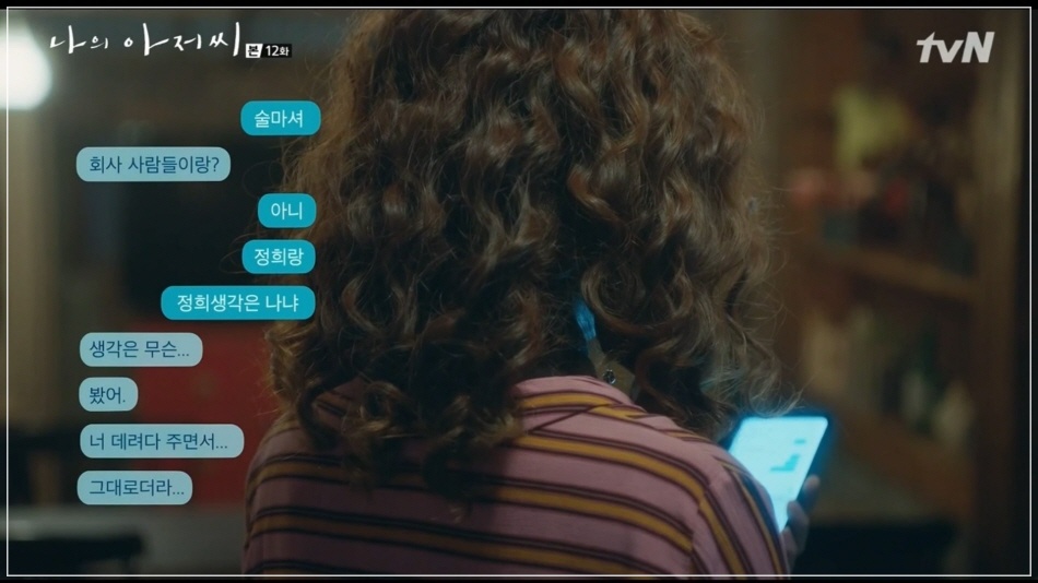 문자를 훔쳐보고는 슬쩍 아저씨를 쳐다봅니다.