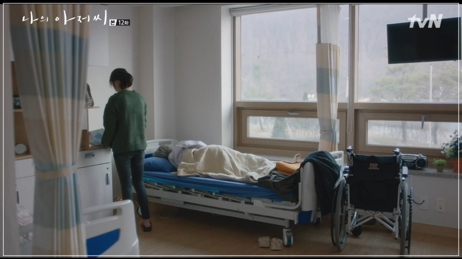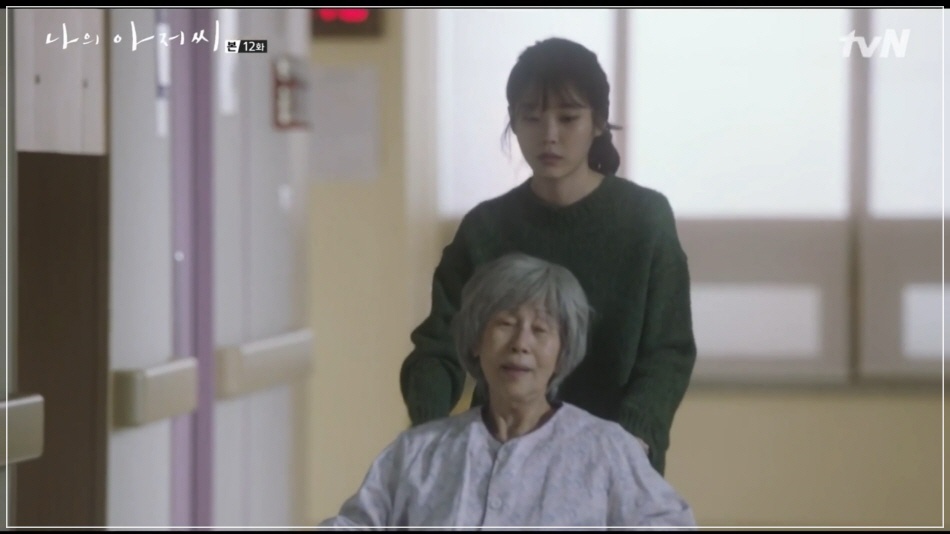할머니를 산책시켜 드리고 다시 침대로 와서 눕혀드리는 지안.