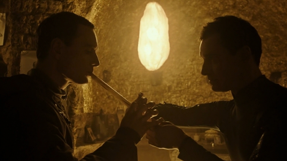 이 영화의 백미는 단연 마이클 파스벤더의 1인 2역입니다. 완벽함을 꿈꾸며 창조주를 경멸하는 '데이빗'과, 인간에 대한 충성심으로 무장된 업데이트 버전 '월터'의 만남은 그 자체로 섹시하면서도 섬뜩합니다. 특히 데이빗이 월터에게 피리를 가르치는 장면은 이 영화의 정체성을 보여줍니다. "네가 교향곡을 쓰지 못한다면, 연주하는 게 무슨 의미가 있지?"라는 질문은 창의성 없는 존재에 대한 데이빗의 연민과 오만을 동시에 드러냅니다.