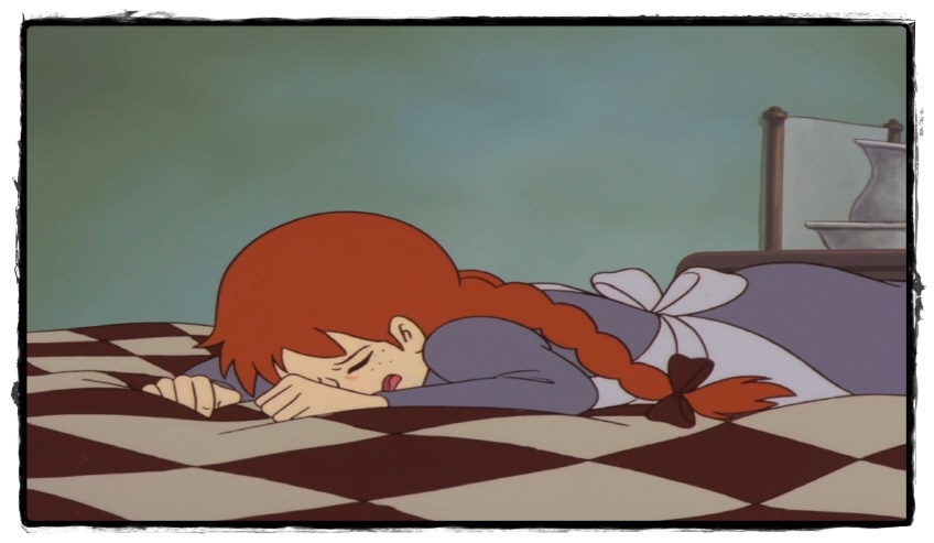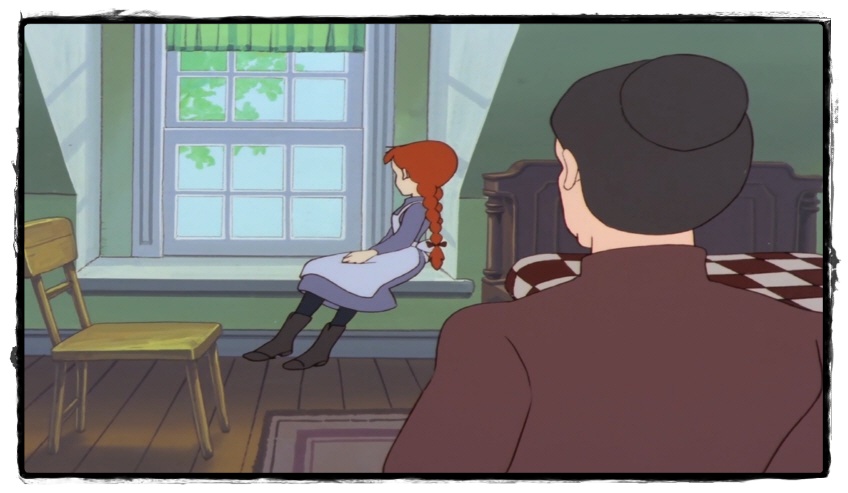 앤은 소풍을 못 가는 현실을 받아들인 듯합니다. 울음을 그치고 아무 말 없이 창밖을 바라보고 있습니다. 개인적인 경험이 오버랩됩니다. 어린 시절 공휴일에 하는 특선만화를 아버지가 못 보게 한 적이 있었습니다. 정말 보고 싶어서 며칠 전부터 무척 기대하고 있던 만화영화였죠. 아직도 그 어린 한이 머리에 선명하게 박혀있는 걸 보면 앤의 이 마음과 비슷했을 것 같습니다.