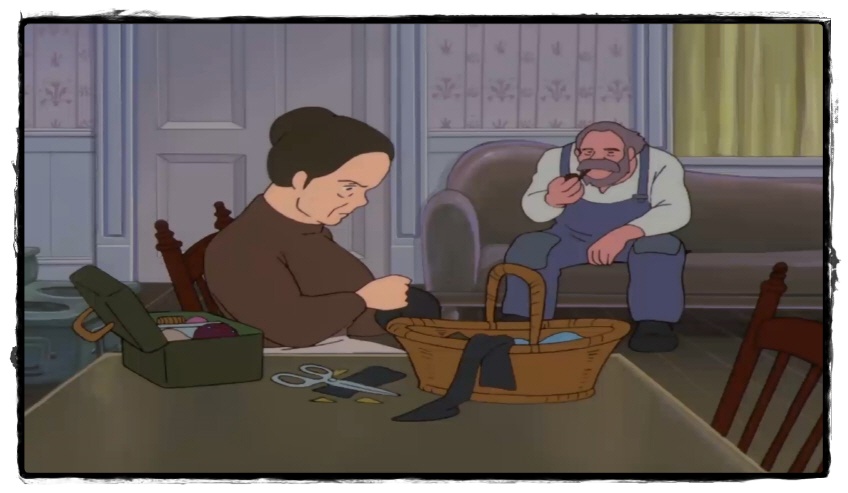 그런데 정신없이 일을 하다가 깁던 옷이 생각난 마릴라. 자신의 방에 가서 그 옷을 꺼내다가 뜻밖의 발견을 합니다.